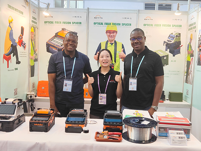 本次展会中,四川灼识股份重点展出的新一代智能光纤熔接机系列备受瞩目。产品凭借毫秒级精准熔接、智能AI识别系统、超低损耗率等核心技术优势,吸引了来自欧洲、东南亚、中东等地区的数百名海内外客户驻足洽谈。