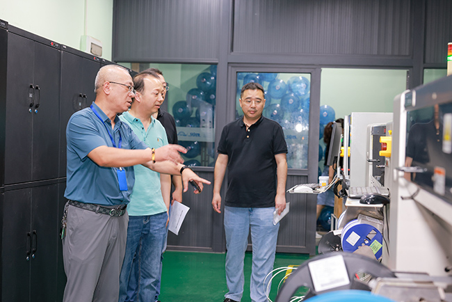 领导深入了解了熔接机设备的生产制造、运营管理及国际化业务推进情况,并对该公司在外贸领域取得的显著成绩和战略布局能力给予高度赞扬。