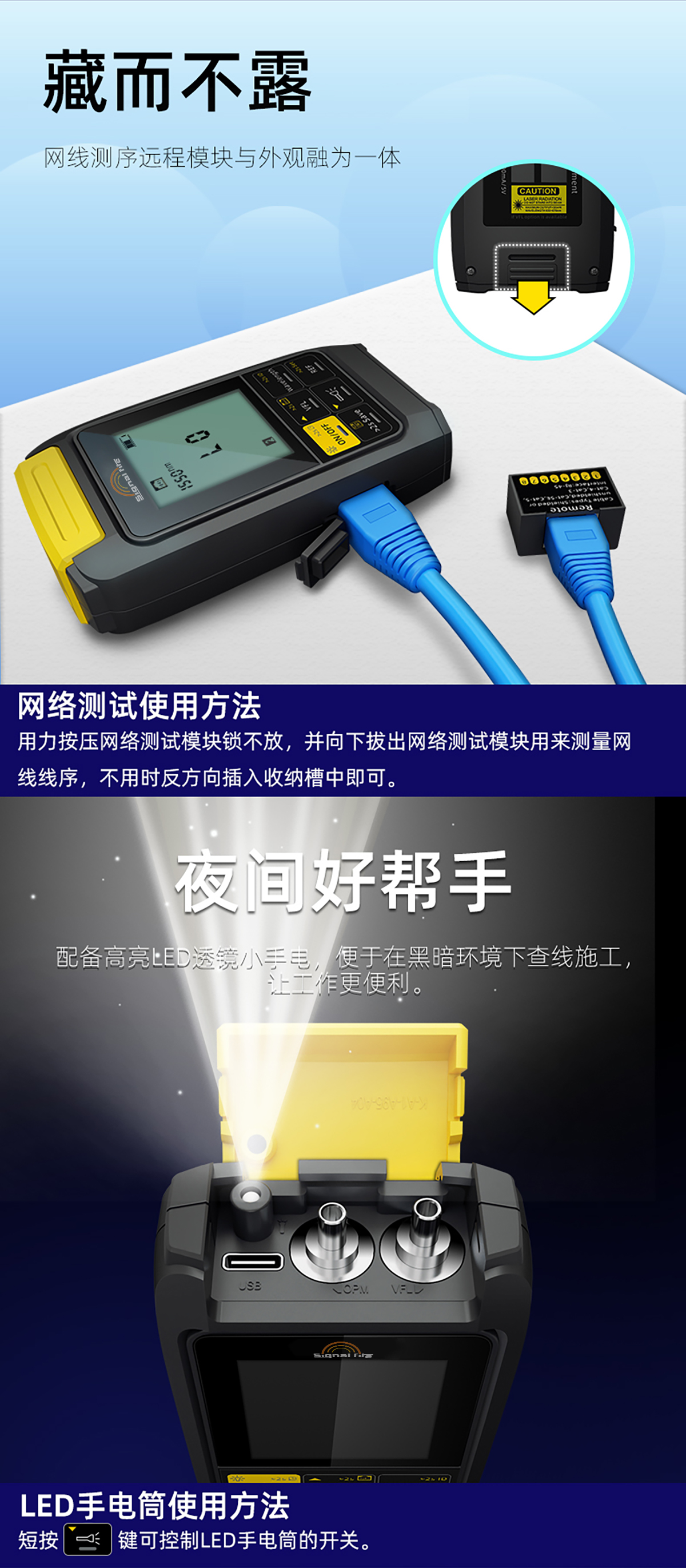 MINI一体机:光功率计、红光源、LED手电、网络测试