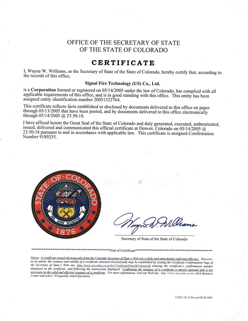 Signal Fire Technology(US) Co., Ltd.是一家美国通信设备材料生产商、信息服务商,产品涵盖光纤通信设备、光子晶体光纤、光谱仪、激光雷达、光束分析、光学检测、光网络, 路由器、材料分析、云服务、人工智能,工业机器人等等领域。 在北美、在欧洲,Signal Fire系列产品拥有不错的市场占有率和极高知名度。