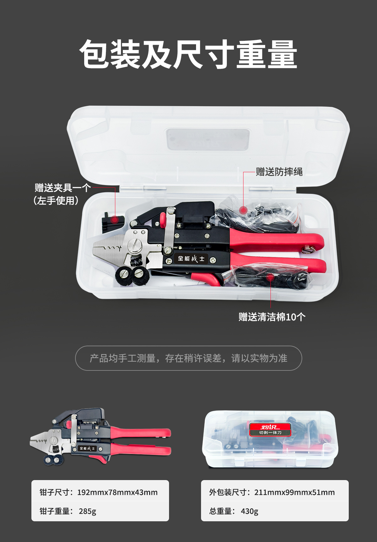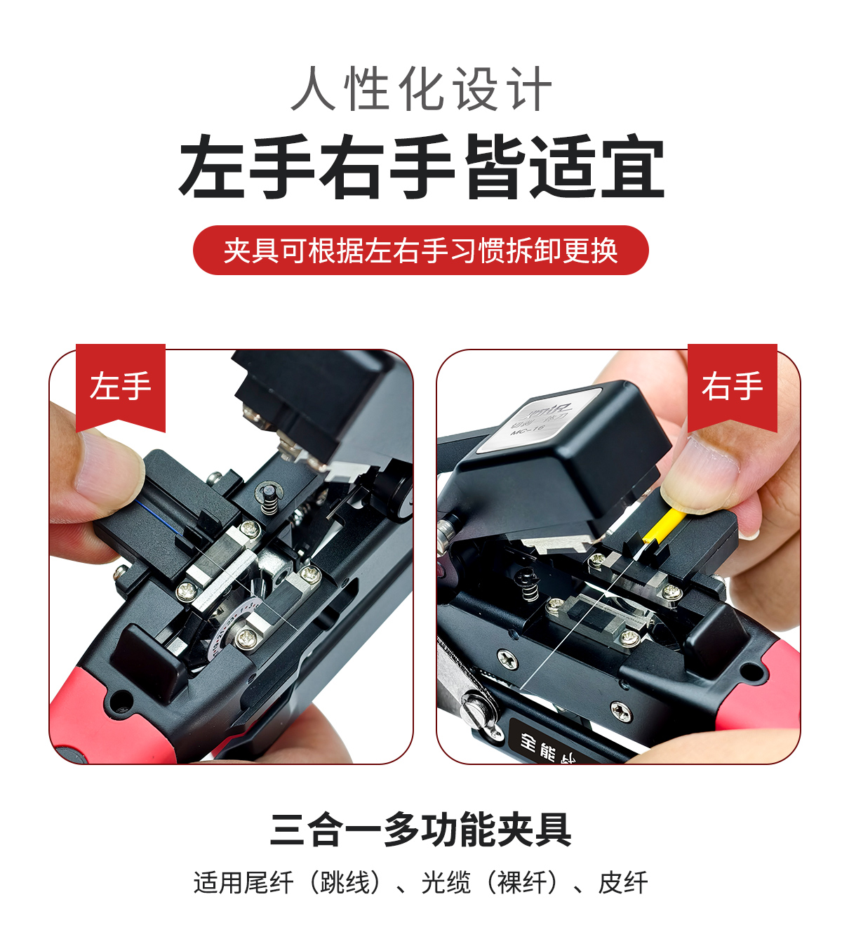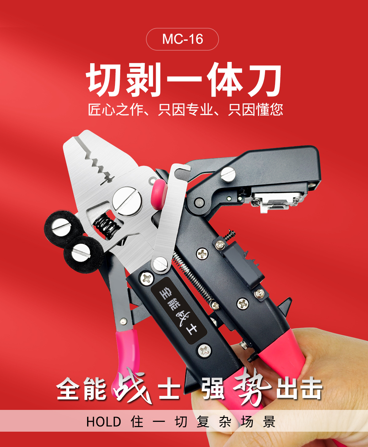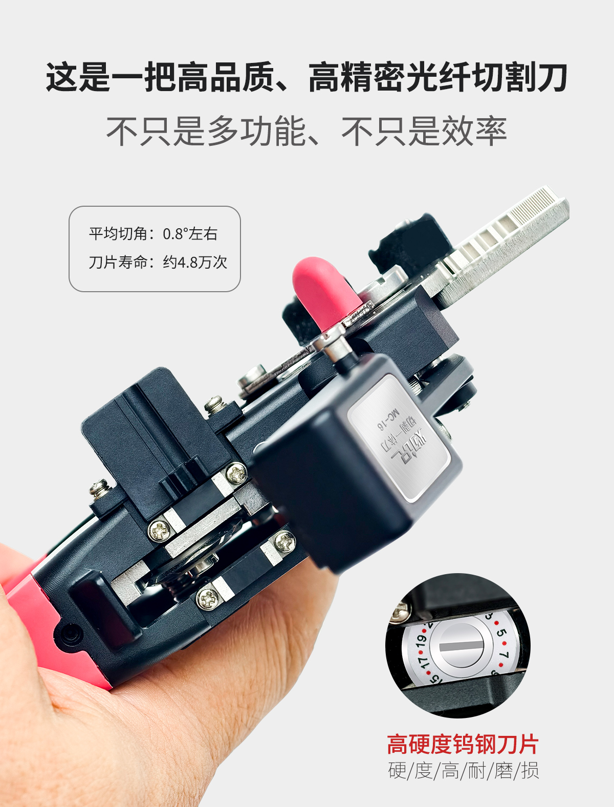 这是一把多功能光纤剥线钳,更是一把高品质一步式光纤切割刀,只为最大限度减少携带,数倍提升您的工作效率;也避免了因为工具种类繁多造成的遗漏和丢失。我们既要保证单一功能的丝滑,又要避免结构间的影响,还要兼顾体积和重量。如今,通过我们的不懈努力,这一把蕴含多项专利的光纤切剥一体刀,正式接受您的品鉴!